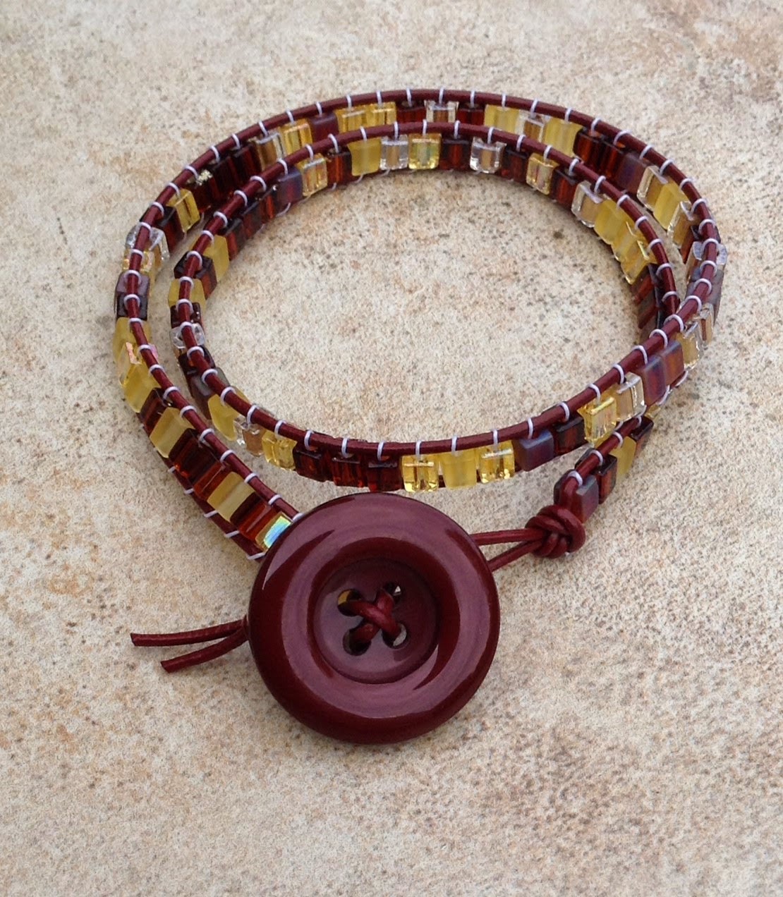 I've fallen in love with wrap bracelets. I bought a stretch bracelet at a popular department store a few years ago and loved it, but it wasn't long before the elastic frayed and broke. I kept the bracelet because I loved the colors of the beads together and I knew I would eventually use them in another project. This is the result.